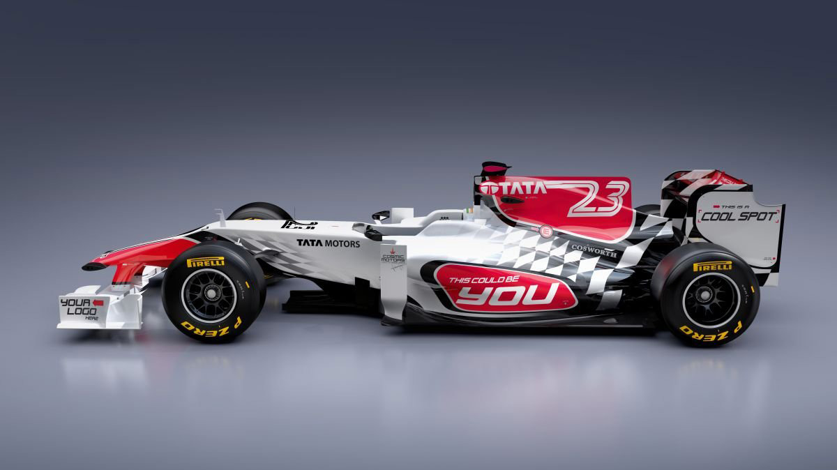 O carro pode até representar uma evolução absoluta, mas será que isso significaria um salvo-conduto perante a temida regra dos 107%? Impossível dizer, ainda mais sabendo que ele entrará na pista em Melbourne sem ter tido um único quilômetro de teste prévio. No mais, o que mais chama a atenção é a pintura, branca com detalhes em vermelho e a bandeira quadriculada na parte traseira. Este belo trabalho foi desenvolvido pelo designer Daniel Simon, contratado para dar um tapa na imagem da equipe. Curiosas são as frases que indicam o desespero por patrocinadores: “Cool Spot”, “This Could Be You” e “Your Logo Here” estão entre as coisas mais bizarras que já apareceram pintadas em um carro de Fórmula 1.